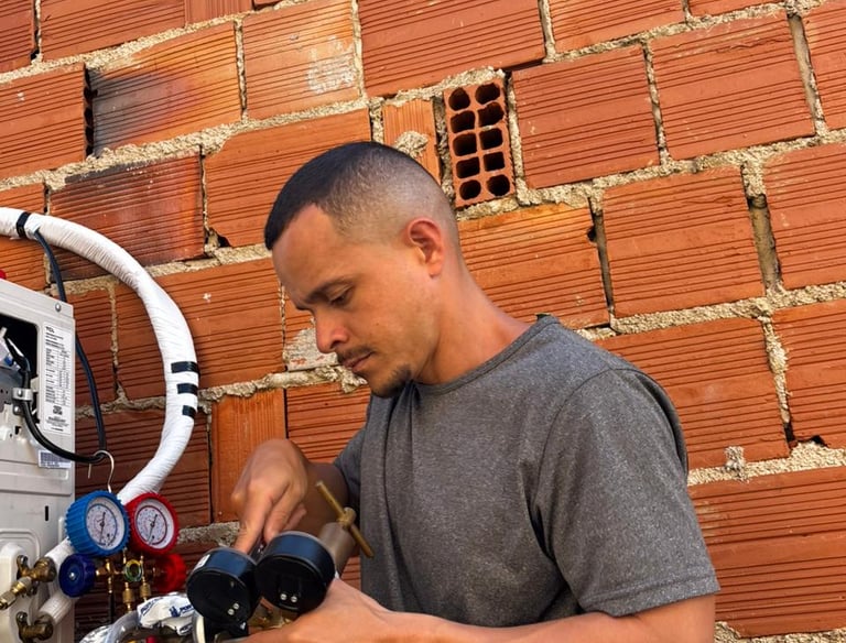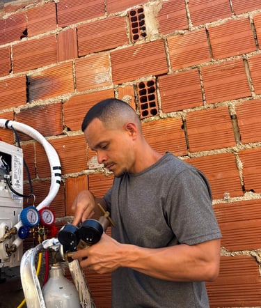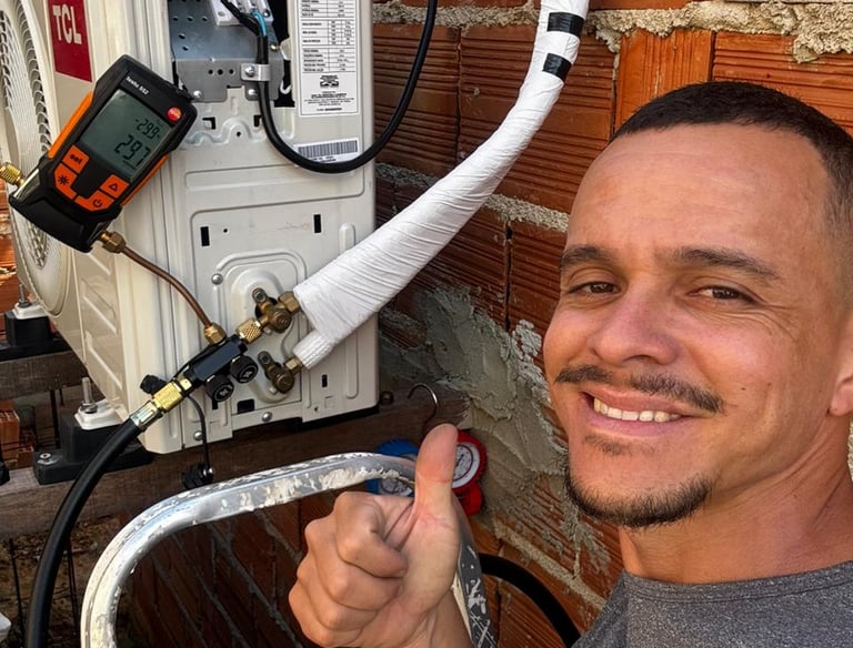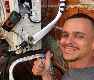Profissional em instalação e manutenção de ar condicionado split.